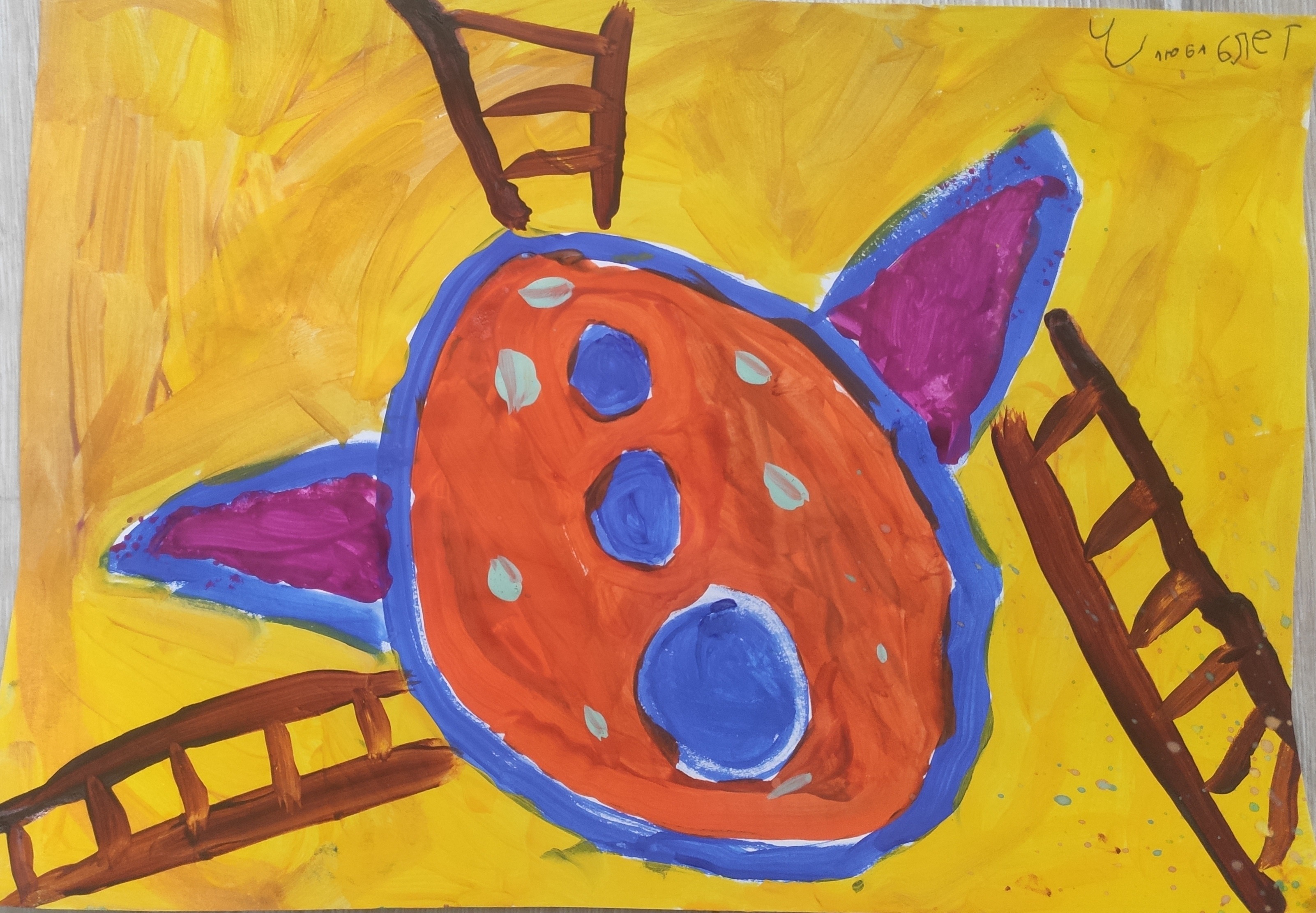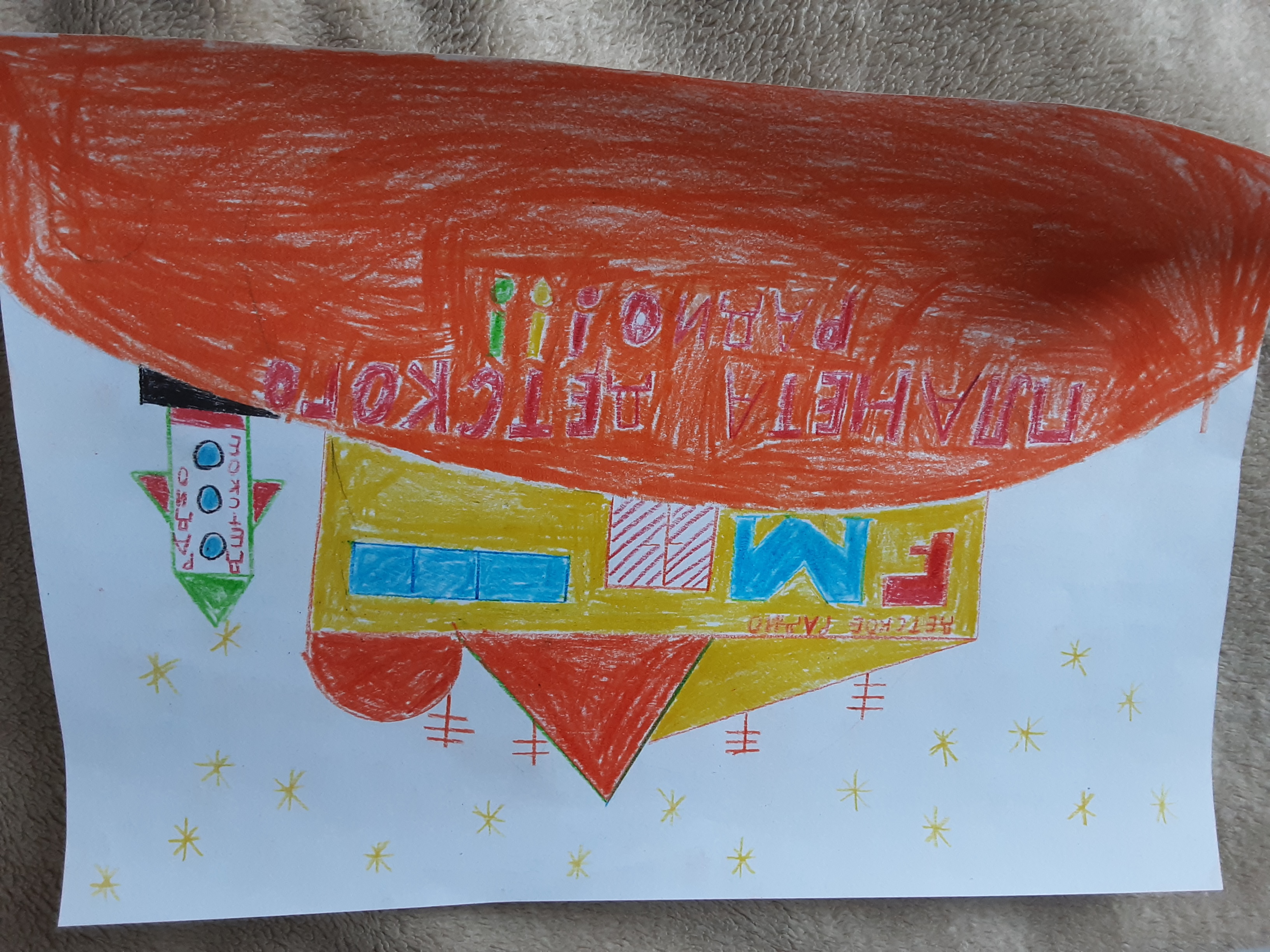 Я изобразила космолет будущего, который строят лучшие конструкторы и космонавты. Он умеет стрелять огнём, чтобы спастись от чёрной дыры. Умеет из носа выпускать макароны, чтобы его приняли за головоногого осьминога. А головоногие осьминоги умеют создавать новые планеты!!! Мой корабль может спасти всю нашу вселенную! Он такой единственный и неповторимый! ?