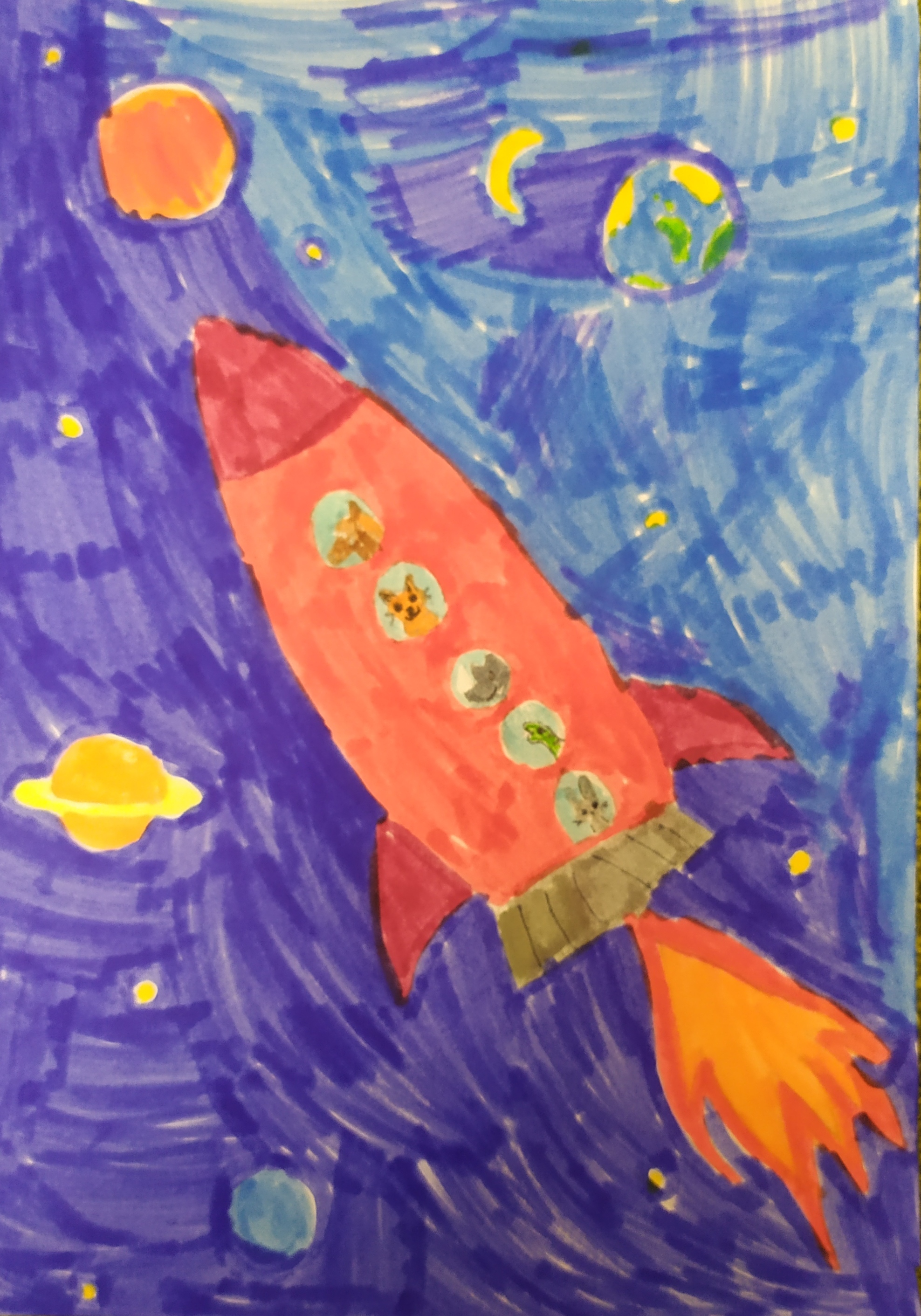 Меня зовут Кристина, мне 12 лет, я живу в городе Москва. Всю свою жизнь я слушаю Детское радио вместе со своей семьей и не представляю жизни без него, его ведущих и суперинтересных программ. Мне кажется вся Вселенная должна его слушать, тогда всем будет радостно и интересно жить. Надеюсь мой рисунок порадует весь космос!
