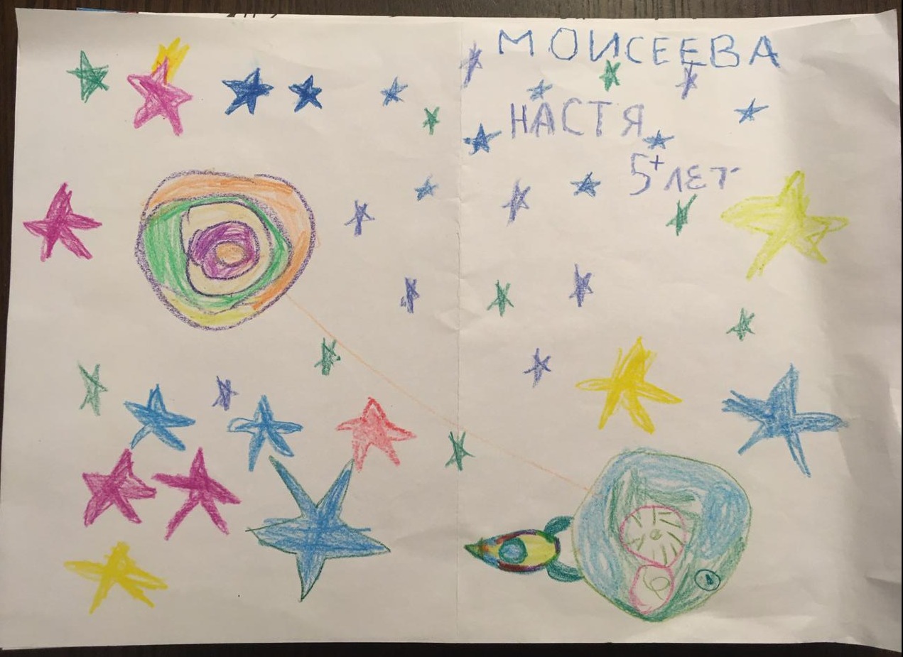 Меня зовут Кристина, мне 12 лет, я живу в городе Москва. Всю свою жизнь я слушаю Детское радио вместе со своей семьей и не представляю жизни без него, его ведущих и суперинтересных программ. Мне кажется вся Вселенная должна его слушать, тогда всем будет радостно и интересно жить. Надеюсь мой рисунок порадует весь космос!