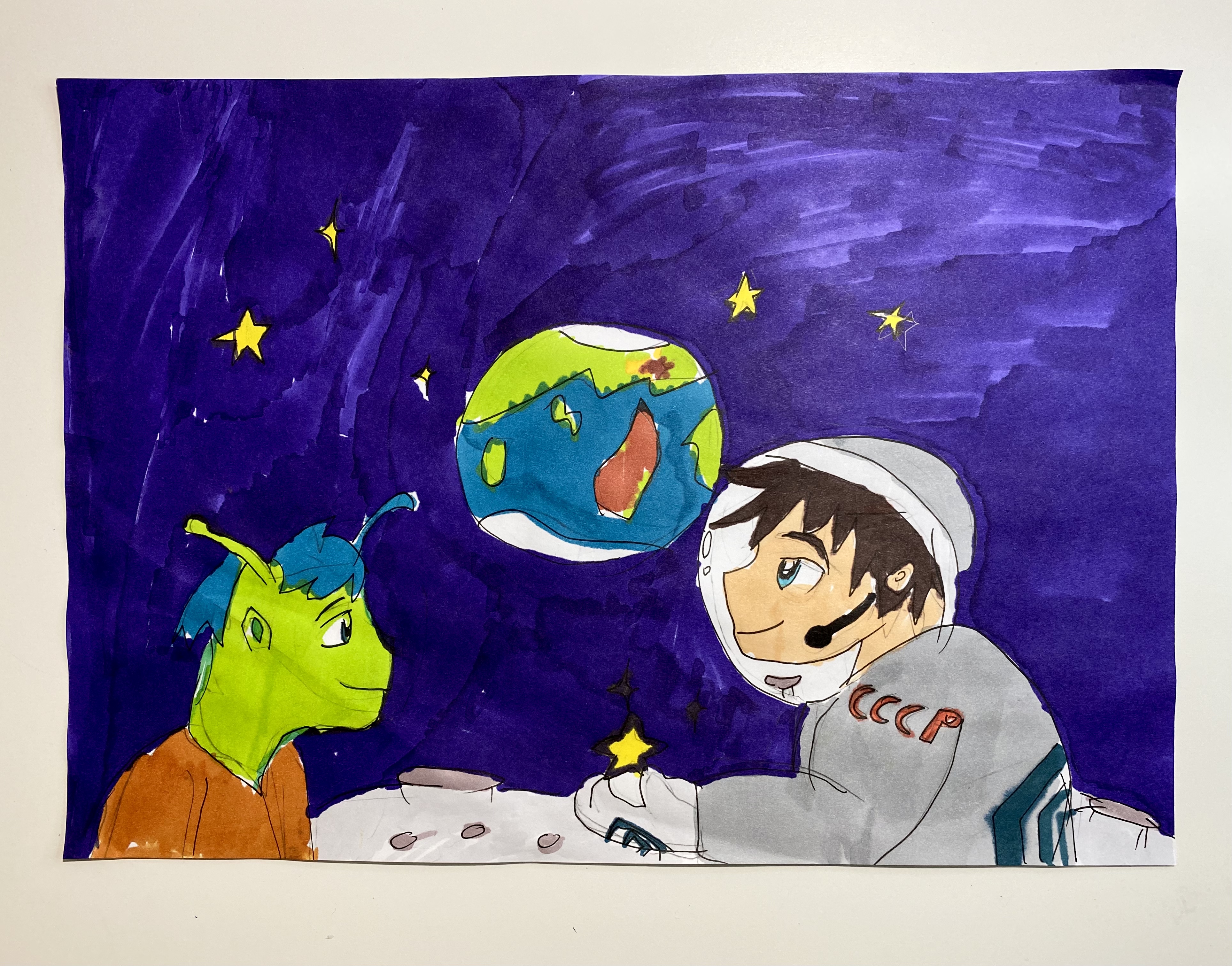Меня зовут Кристина, мне 12 лет, я живу в городе Москва. Всю свою жизнь я слушаю Детское радио вместе со своей семьей и не представляю жизни без него, его ведущих и суперинтересных программ. Мне кажется вся Вселенная должна его слушать, тогда всем будет радостно и интересно жить. Надеюсь мой рисунок порадует весь космос!