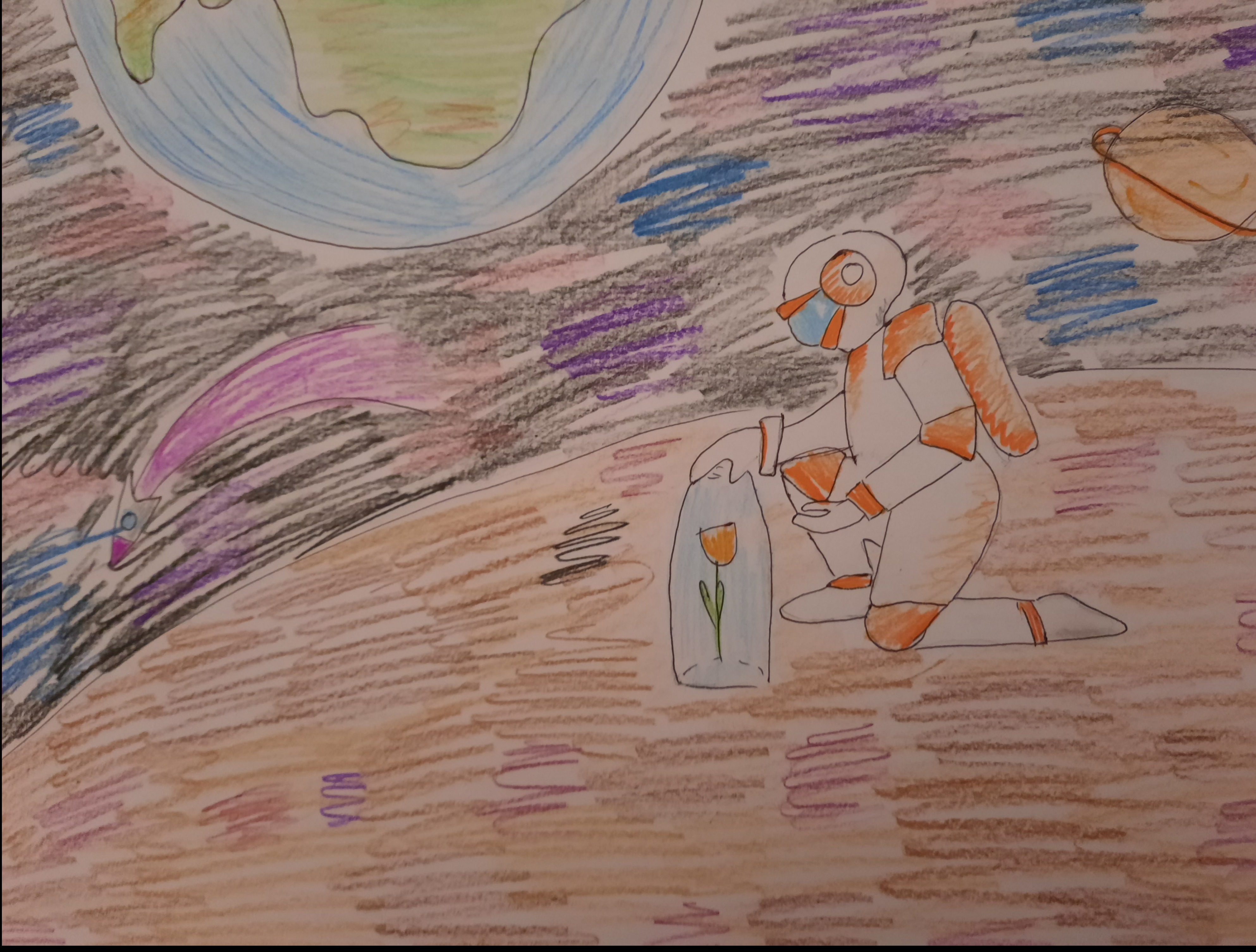 Меня зовут Кристина, мне 12 лет, я живу в городе Москва. Всю свою жизнь я слушаю Детское радио вместе со своей семьей и не представляю жизни без него, его ведущих и суперинтересных программ. Мне кажется вся Вселенная должна его слушать, тогда всем будет радостно и интересно жить. Надеюсь мой рисунок порадует весь космос!