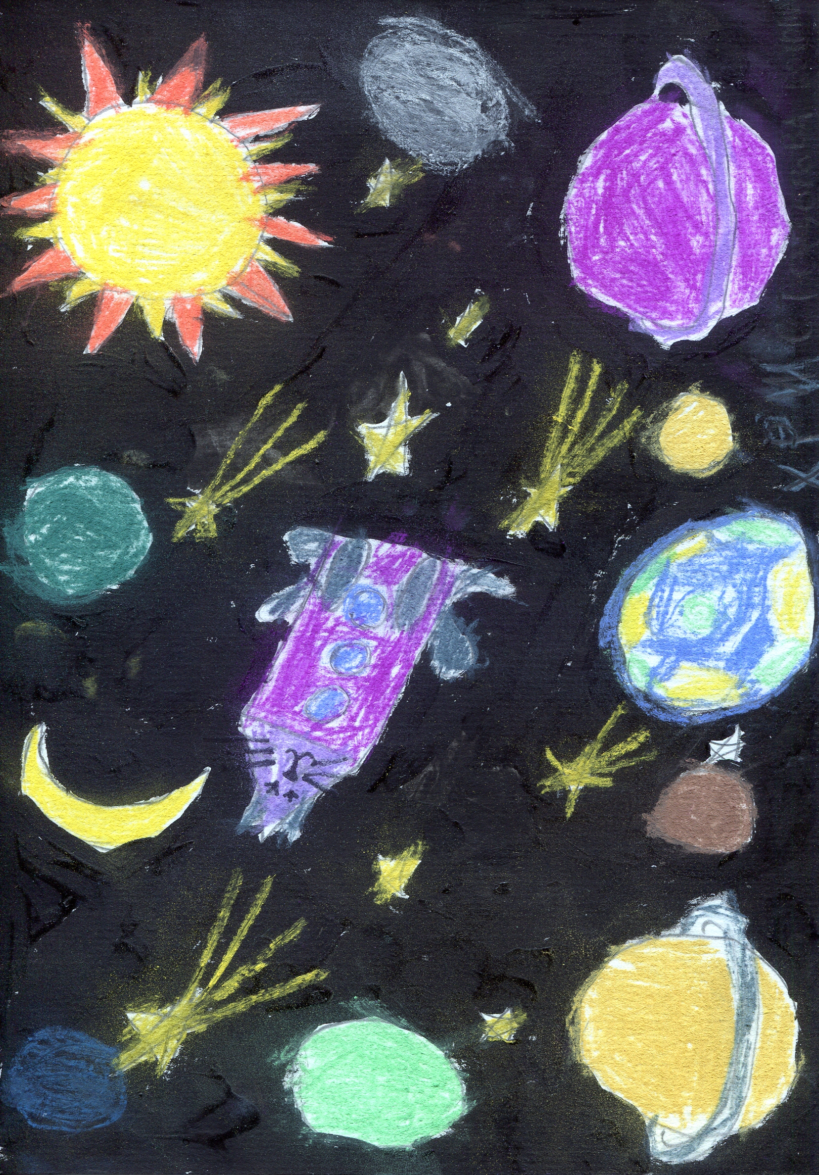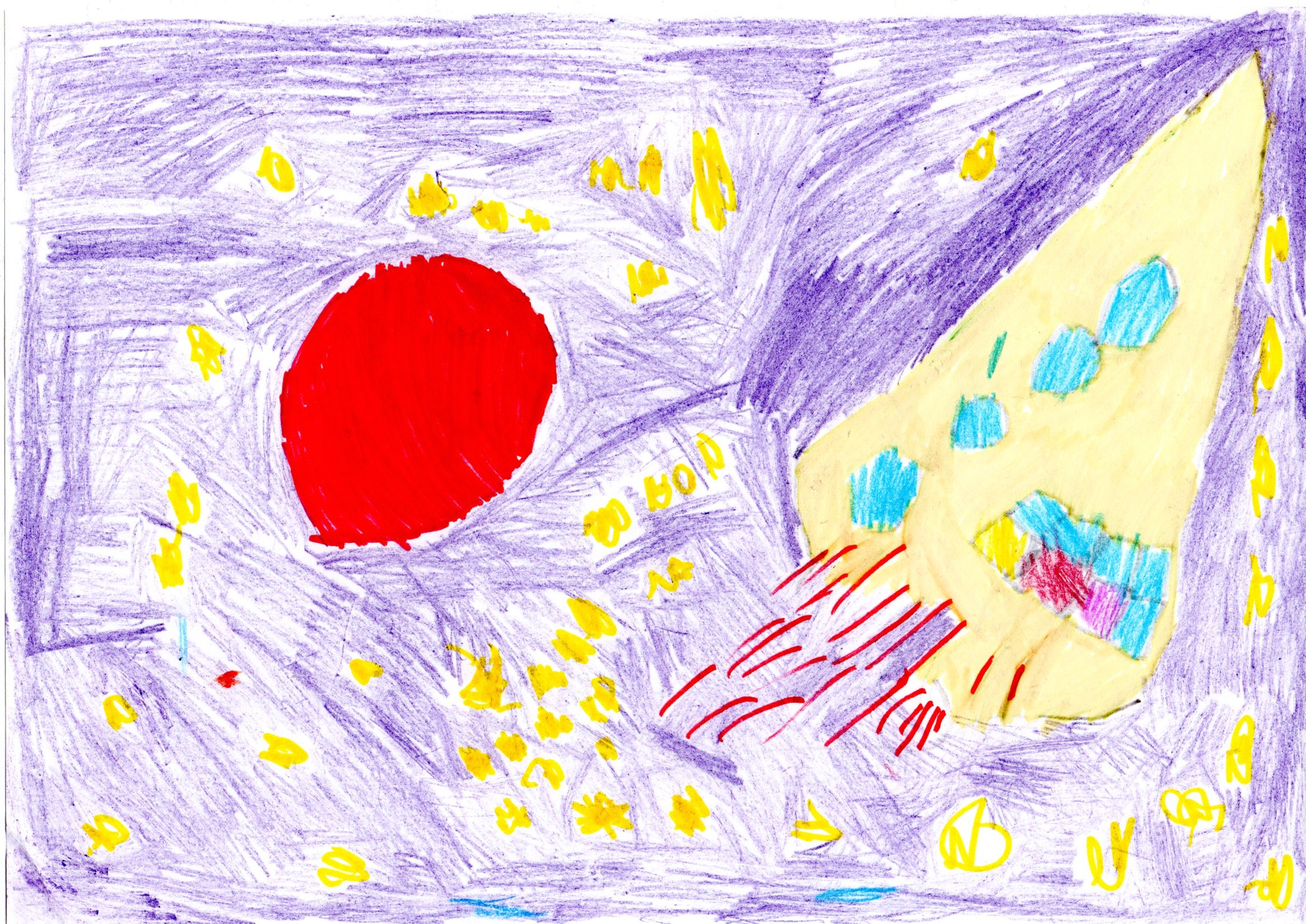 Меня зовут Кристина, мне 12 лет, я живу в городе Москва. Всю свою жизнь я слушаю Детское радио вместе со своей семьей и не представляю жизни без него, его ведущих и суперинтересных программ. Мне кажется вся Вселенная должна его слушать, тогда всем будет радостно и интересно жить. Надеюсь мой рисунок порадует весь космос!