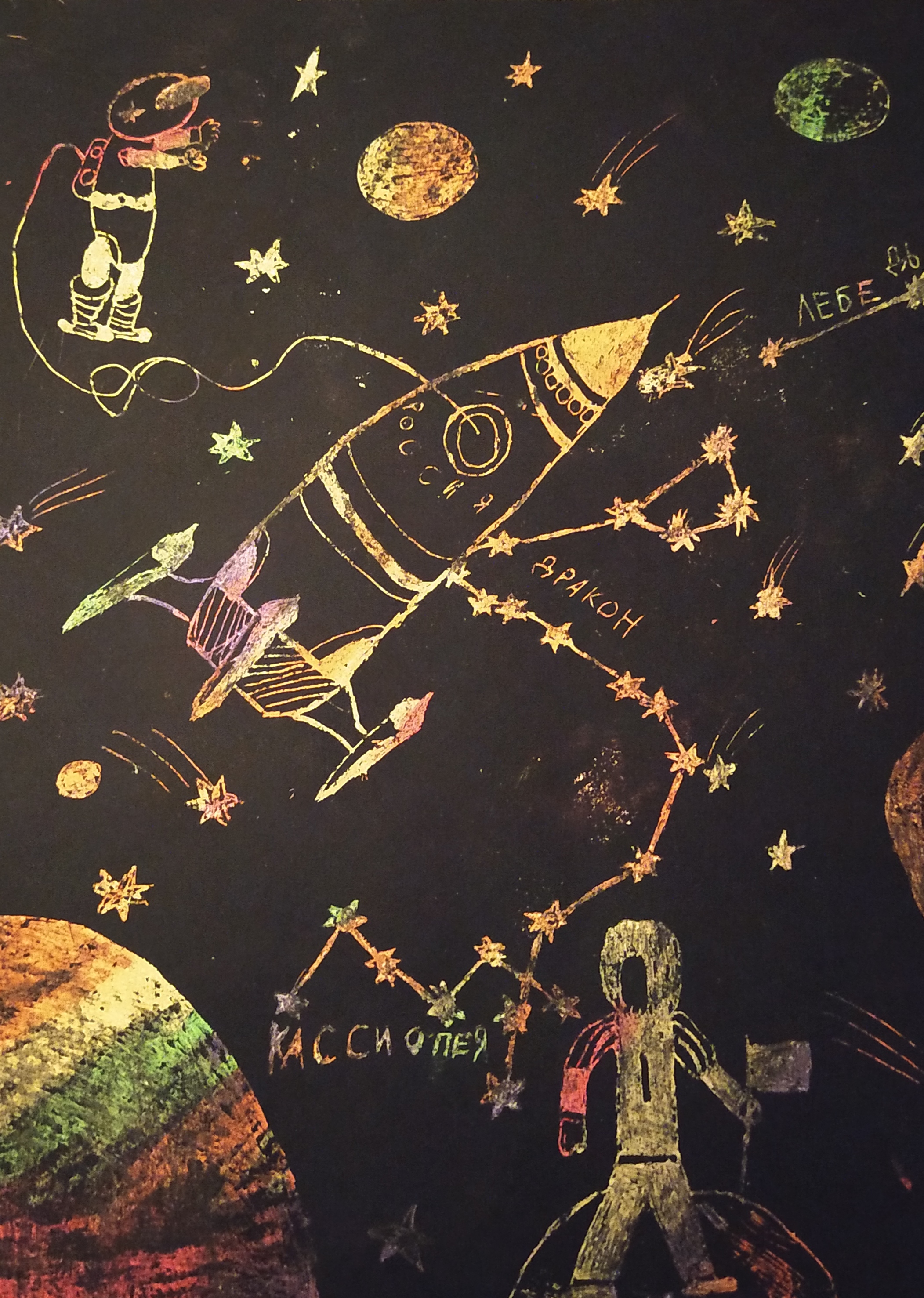 Меня зовут Кристина, мне 12 лет, я живу в городе Москва. Всю свою жизнь я слушаю Детское радио вместе со своей семьей и не представляю жизни без него, его ведущих и суперинтересных программ. Мне кажется вся Вселенная должна его слушать, тогда всем будет радостно и интересно жить. Надеюсь мой рисунок порадует весь космос!