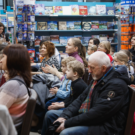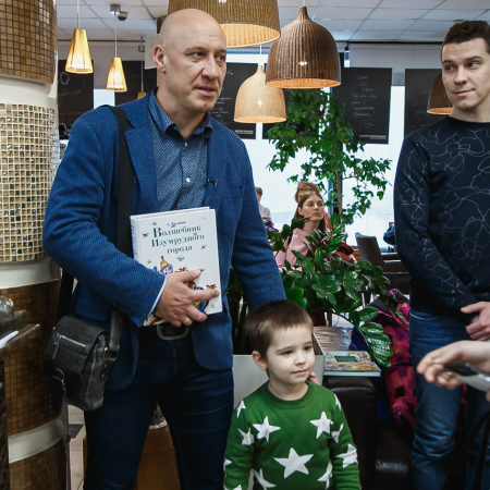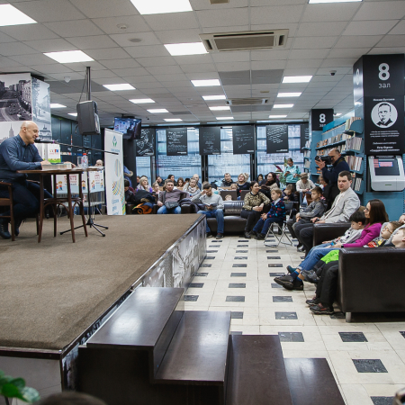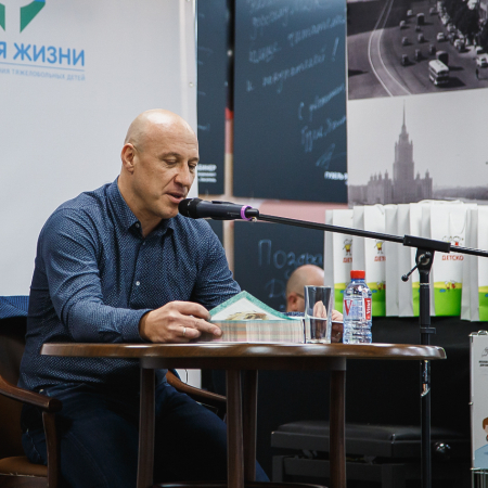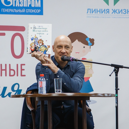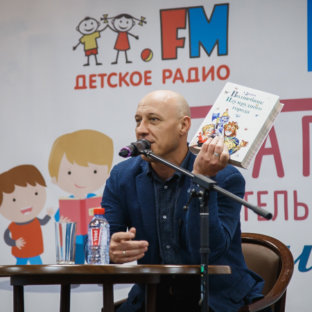 26 января в Московском Доме Книги прошли "Благотворительные чтения", звёздным гостем которых стал певец и композитор Денис Майданов. Для юных слушателей он прочёл отрывок из книги "Волшебник Изумрудного города" Александра Волкова.
