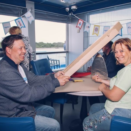 А на теплоходе, во время движения, тоже скучать было некогда!
