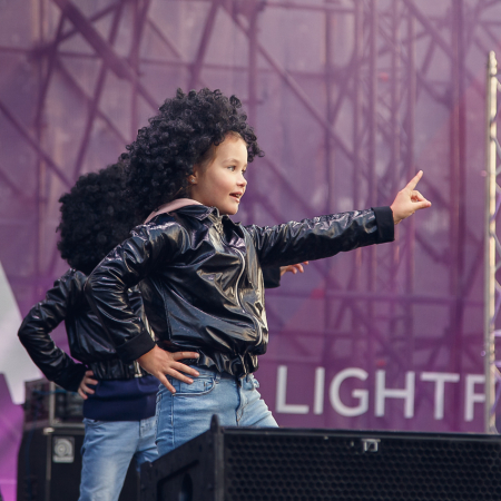 В этот день на одной сцене для юных радиослушателей выступили детский хор Великан, группы Семицветик, Волшебники двора, Нейна, БУМ, а также воспитанники школы танца Дарьи Сагаловой. Вместе с ними отличное настроение зрителям дарили ведущие Детского радио Ириска, Денис и Гарик.
