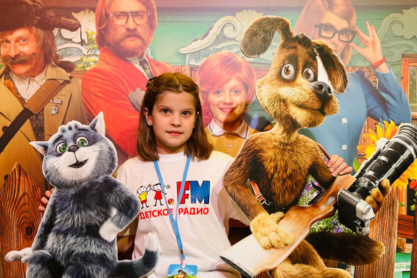 Праздник для поклонников «Простоквашино» начался ещё до кинопоказа. Вокруг было много фотозон с кадрами из фильма, а по фойе кинотеатра разгуливали любимые персонажи — Шарик, Матроскин, почтальон Печкин…